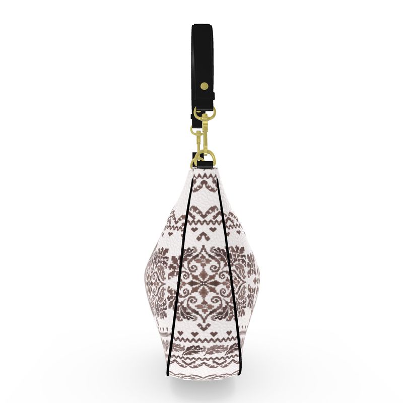 Designed for winter travel, chalet weekends, and everyday refinement, the Curved Après Alpine Handbag brings sculptural elegance to cold-weather style. Handcrafted from 100% full-grain Nappa leather, this elevated silhouette features Pigment & Petal Studio’s signature Après Alpine artwork—an alpine-inspired pattern that feels both timeless and quietly distinctive.
