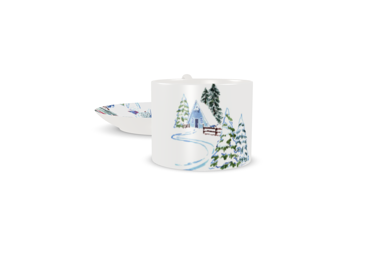 Whether you're a skier or simply love the winter season, this set will transport you to the serene beauty of an alpine escape. Available in two sizes, choose between our large coffee or tea cup, or our espresso cup each paired with a chic bone china saucer.
